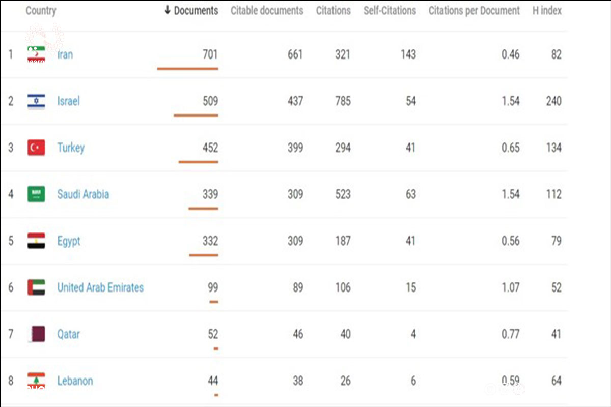 براساس دادههای موجود، از میان ۷۰۱ مقاله منتشر شده توسط محققان ایرانی ۶۶۱ مقاله قابل استناد بوده است. در حالی که رژیم صهیونیستی به عنوان دومین جایگاه در جدول ۵۰۹ مقاله در این زمینه عرضه کرده که تنها ۴۳۷ مورد آن قابل استناد بوده است.