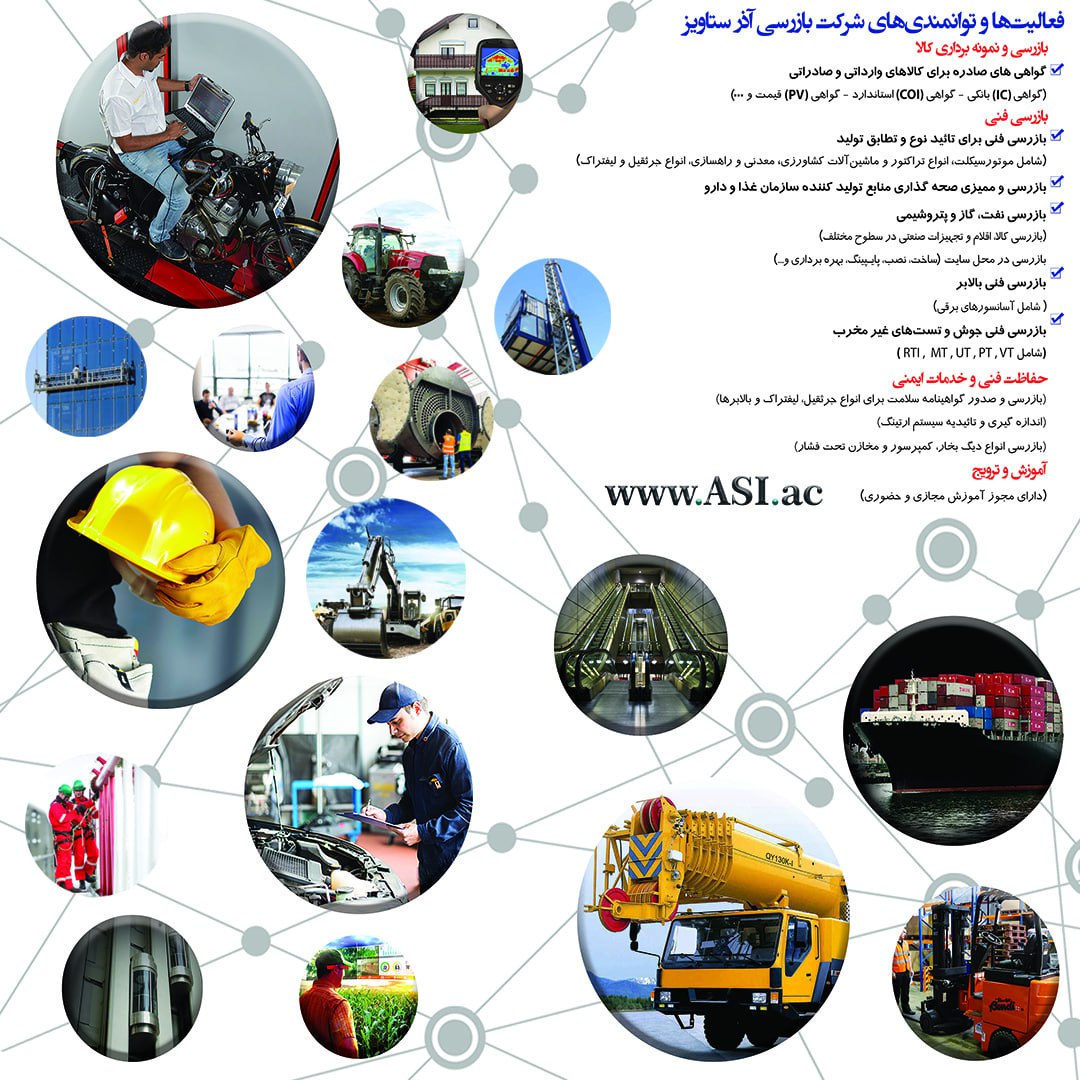 وی افزود: شرکت آذرستاویز در وندورلیست بعضی از صنایع بزرگ از جمله صنایع بزرگ فولادی، صنایع معدنی، شرکت های ملی گاز و شرکت ملی پخش و پالایش فرآورده های نفتی و شرکت های پتروشیمی قرارداشته و قسمتی از خدمات بازرسی آنها را انجام می دهد.