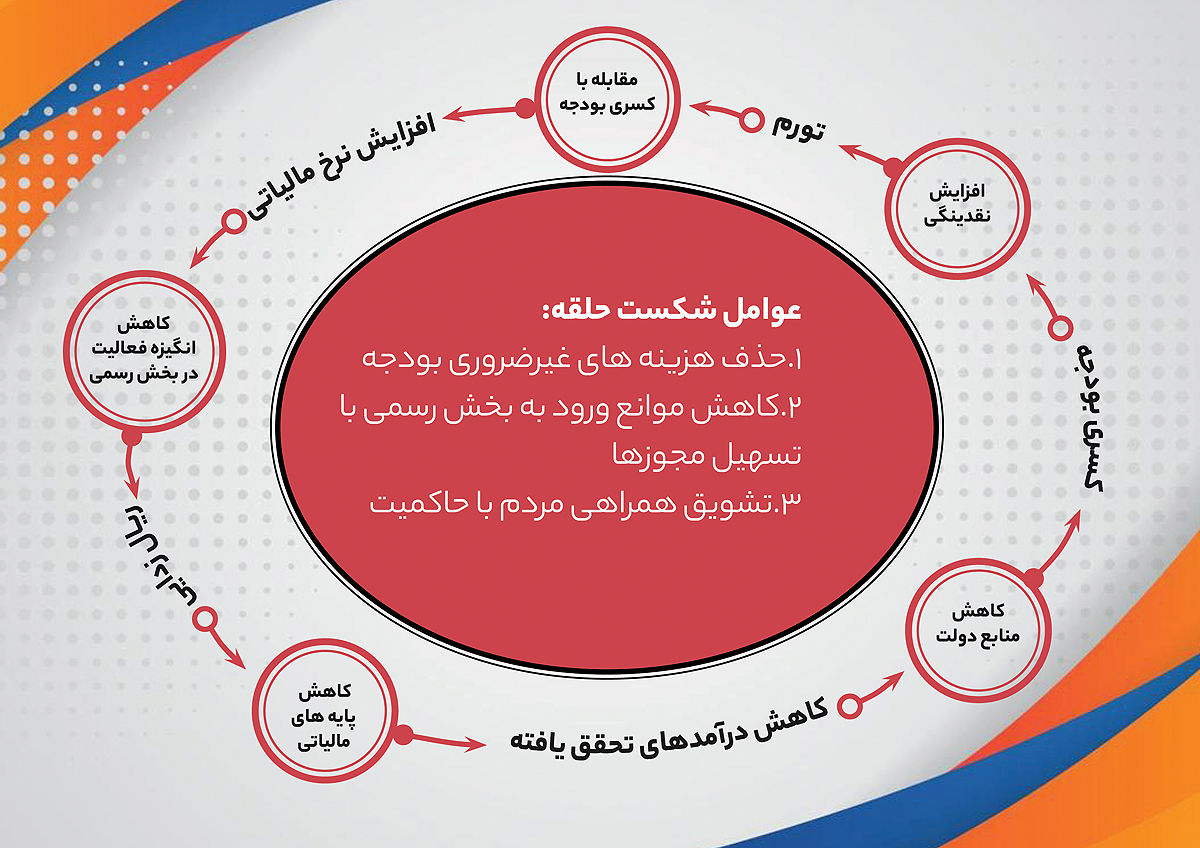 دولت در شرایط کنونی دچار کسری بودجه است. یک رویکرد اصولی افزایش درآمدهای مالیاتی است که در نهایت بتواند با پوشش کسری بودجه باعث مهار تورم و بازگشت اعتبار به ریال شود. اما ممکن است برخی مواقع این سیکل درست شکل نگیرد و به جای آن یک سیکل معیوب به وجود آید؛ به نحوی که با افزایش پایه‌های مالیاتی، استفاده از ریال و حضور در بخش رسمی کاهش یابد و این موضوع خود باعث کاهش درآمدهای مالیاتی و افزایش بودجه شود. بدون شک یکی از ستون‌های اصلاحات اقتصادی آرام و موفق، همراهی اکثریت جامعه با این اصلاحات است. به عبارت دیگر، افراد باید با اصلاح‌گران ارتباط بگیرند و با اهداف آنها همدل باشند.