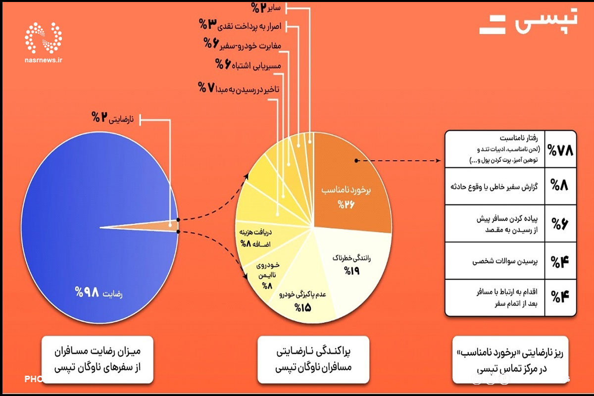 نصر: شرکت تپسی با انتشار گزارشی به نام «رفتار سفر کاربران در تاکسیهای اینترنتی» ضمن ارائه موارد شکایت و نارضایتی در سفرهای درونشهری، برای اولینبار معضلات این حوزه را شفاف و نحوه مواجهه خود در راستای بهبود تعامل مسافران و رانندهها را تشریح کرد.