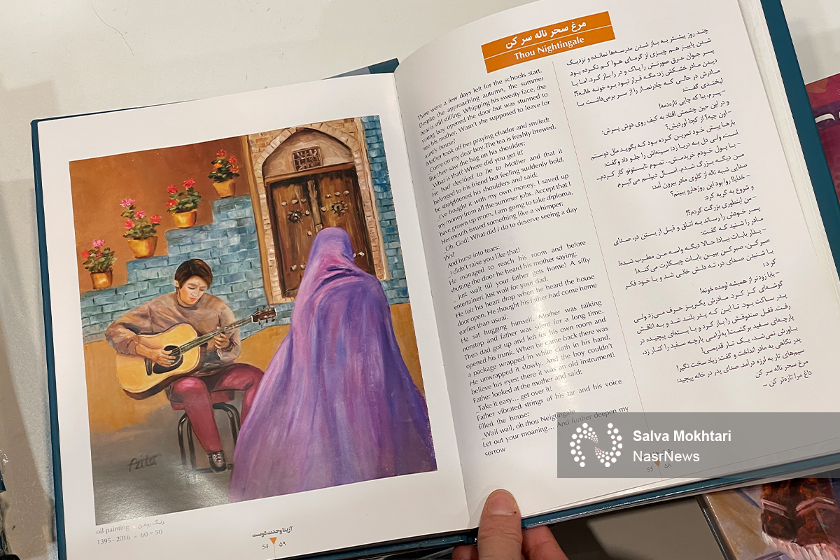 وی در ادامه می گوید: سال ۸۹ من در فیسبوک با انتشار هر نقاشیم، برای آن داستانی نوشتم و بسیار استقبال دیدم. همه از چاپ این آثار نقاشی و داستان ها می پرسیدند و این انگیزهای شد برای چاپ کتاب «تبریزیم» که به صورت نفیس در تیر ماه ۱۳۹۶ با تیراژ ۱۰۰۰ جلد چاپ و در سال ۹۷ تجدید چاپ شد که در آن برای نقاشیهای بازار تبریز داستان نوشتم؛ شنیده های ۵ سال اول زندگی که از گفته های پدرم و شناختی که از بازار داشتم نشئت می گیرند. پس از آن دو مجموعه دیگر با روش خودم و با اشاره مستقیم به یک المان نقاشی کردم. عکسهای قاجاری را به صورت رنگی نقاشی کردم و برای آنها هم داستان نوشتم. کتاب دوم من قبل از عید منتشر شد.