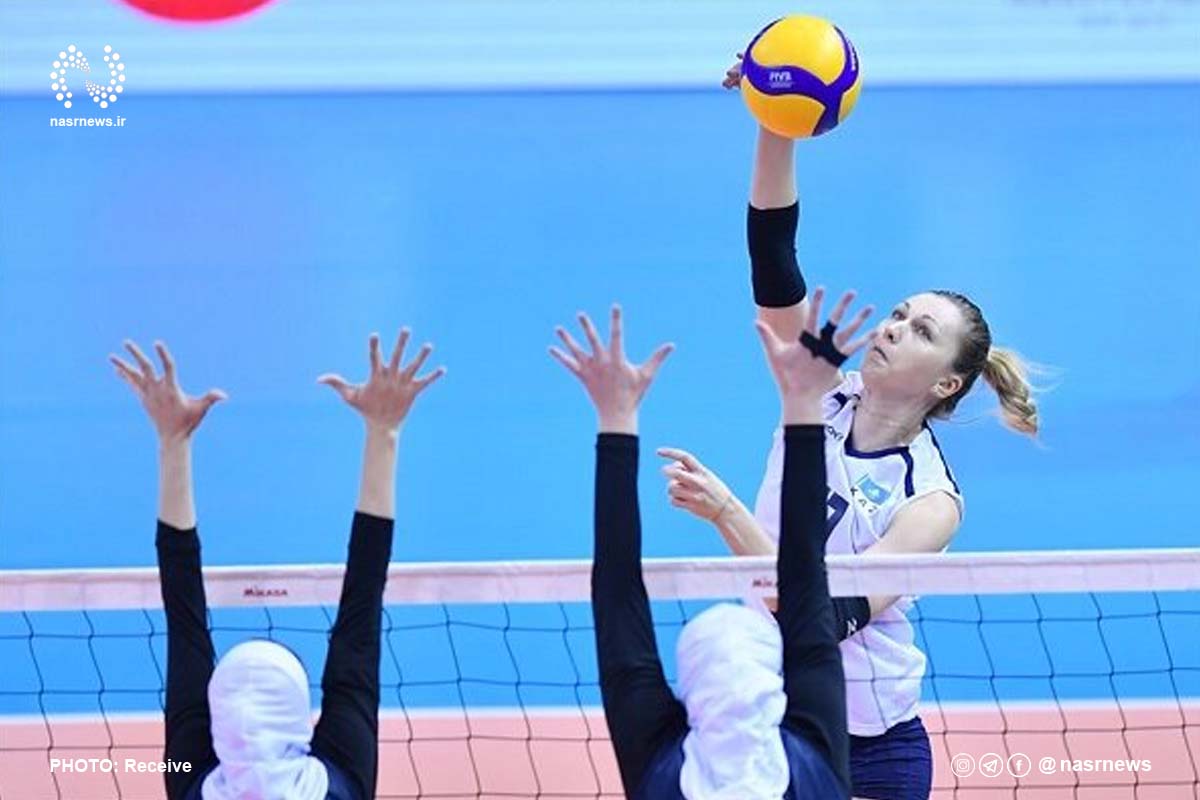 نصر: تیم ملی والیبال بانوان ایران در روز نخست رقابتهای انتخابی المپیک ۲۰۲۰، مقابل تیم قزاقستان شکست خورد.