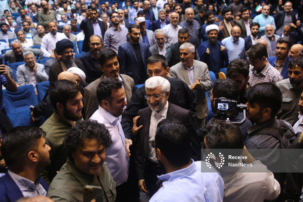 جلیلی با بیان اینکه باید به دو موضوع توجه داشته باشیم که برای یکدیگر مکمل هستند، عنوان کرد: اگر ما میگوییم یک جهان فرصت یک ایران جهش، به این دلیل است که به اندازه کافی به مدد شما مردم، در طی این ۱۰ سال مطالب داریم که به اندازه هر کسی که دل در گروی انقلاب دارد او را اقناع کنید که همراه باشد. ما احتیاج به هیچ کار غلطی در این مسیر نداریم؛ هیچ حرکت تخریبی نباید صورت بگیرد و ما کارهای بسیار جدی داریم.