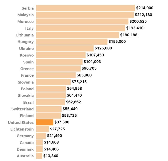 با توجه به اینکه این کشورها پاداششان را برای المپیک پاریس اعلام نکردند، در جدول زیر لحاظ نشدند.