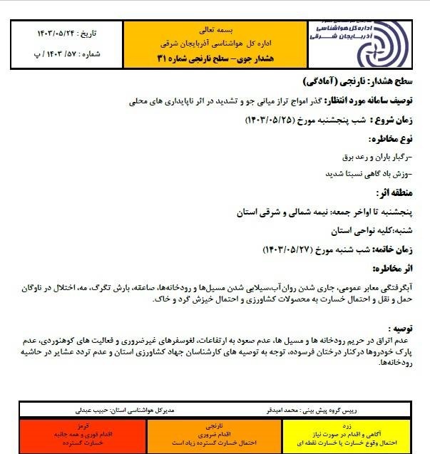 هشدار نارنجی؛