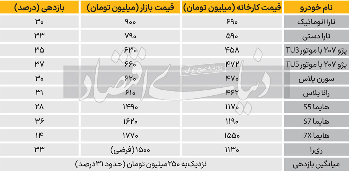 با توجه به اینکه ظرفیت درنظرگرفته شده برای فروش جدید خودرو چیزی حدودا 120هزار دستگاه است، میتوان با یک حساب سرانگشتی مشخص کرد که چه میزان رانت از دل این فروش در بازار خودرو توزیع خواهد شد. طبق محاسبات «دنیای اقتصاد»، میانگین بازدهی قیمتی فروش جاری چیزی حدود 250میلیون تومان است. با ضرب این عدد در حدودا 120هزار خودروی عرضهشده، میانگین مجموع اختلاف قیمت کارخانه و بازار طرح فروش جاری به نزدیکیهای 30هزار میلیارد تومان میرسد.