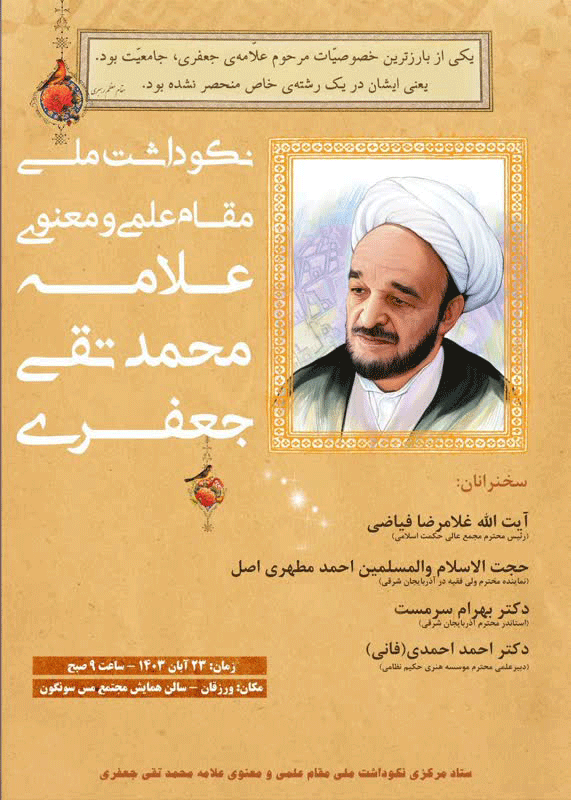 نصر: نکوداشت ملی مقام علمی و معنوی علامه محمدتقی جعفری، عالم و فیلسوف نامی جهان اسلام، روز چهارشنبه ۲۳ آبان ماه به میزبانی مجتمع مس سونگون برگزار خواهد شد.