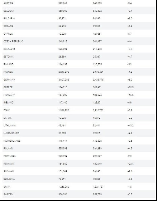 به گزارش نصر به نقل از ایسنا، بر اساس آمار و گزارش های منتشر شده در وب سایت best selling cars، میتوان دریافت که در بیشتر کشورهای اروپایی بازار فروش خودرو روندی رو به رشد و صعودی را در سال 2019 میلادی تجربه کرده و تنها برخی کشورها همچون اتریش، جمهوری چک، قبرس، اسپانیا، پرتغال، فنلاند و ایرلند با روندی کاهشی روبه رو بوده اند.