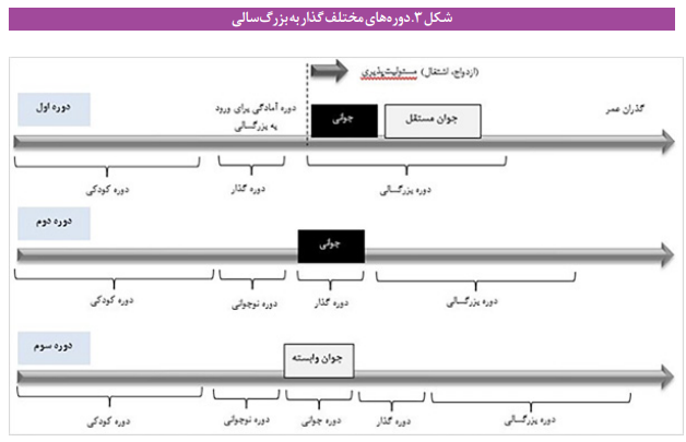مشاهدهها نشان میدهد که گذار جوان به عرصه پذیرفتن نقشها دچار تغییرات بنیادین شده است. براساس مطالعات مختلف، انتقال افراد به مرحله بزرگسالی سه دوره مهم تاریخی را تجربه کرده است.