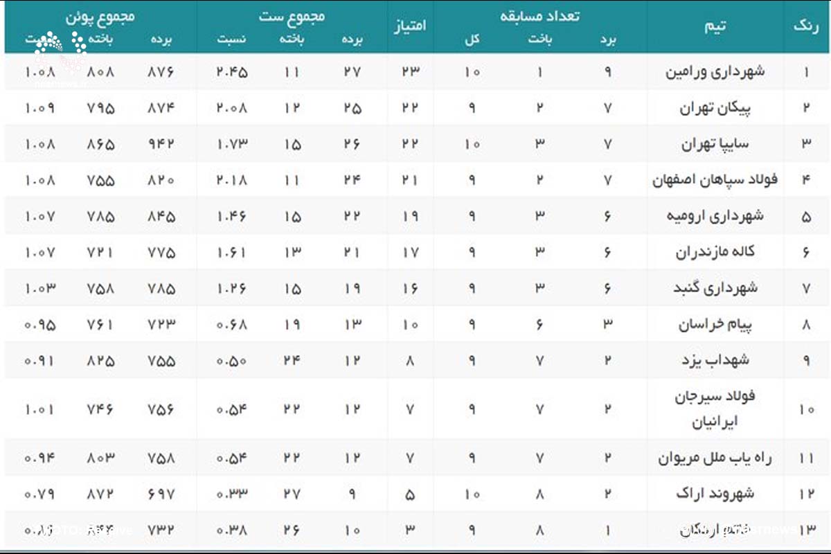 شهرداری ورامین که تا هفته گذشته بدون باخت بود، در آخرین مسابقه خود مقابل سایپا شکست خورد اما همچنان در رده نخست جدول باقی مانده است.