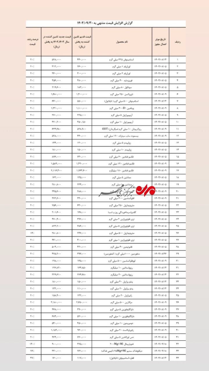 بر اساس گزارش‌ها، قیمت برخی داروها طی ماه‌های اخیر بین ۲۰ تا ۴۰ درصد افزایش یافته است. داروهای مرتبط با بیماری‌های مزمن نظیر دیابت، فشار خون، سرطان، بیماری‌های قلبی و بیماری‌های خودایمنی، بیشترین افزایش قیمت را تجربه کرده‌اند. این در حالی است که بیمه‌های درمانی نیز در جبران این هزینه‌ها با محدودیت‌هایی مواجه هستند. مشکلات بیماران و خانواده‌های بسیاری از بیماران با مشکلات جدی برای تأمین داروهای خود مواجه شده‌اند.