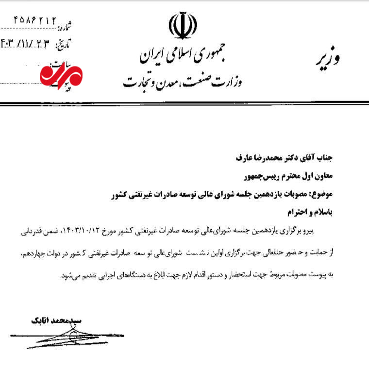 مصوبات شورای عالی توسعه صادرات غیرنفتی ابلاغ شد+ جزئیات خبرگزاری مهر