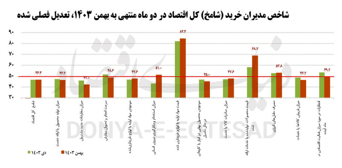 به گزارش نصر، بررسی ۱۳ مولفه کلیدی در ۱۲ رشته فعالیت صنعتی، تصویر دقیقتری از وضعیت رکود تولید کشور در بهمن که بهطور طبیعی ماه رونق است، ارائه میدهد. در بهمن ماه ۱۴۰۳ گزارش شامخ مدیران خرید بخش صنعت، بیانگر کاهش شاخصهای کلیدی همچون مقدار تولید محصولات، موجودی مواد اولیه، میزان سفارش و موجودی محصول نهایی در انبار در اکثر رشته فعالیتهای صنعتی مورد بررسی است. در این فصل قیمت خرید مواد اولیه و محصولات تولید شده نیز اوج گرفته است.