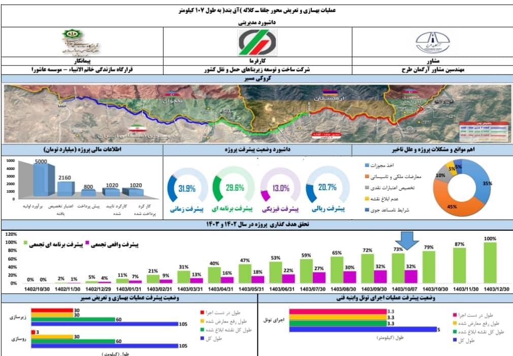 ۷/پرس و جو از دست اندرکاران پروژه و اداره کل راه و شهرسازی و تحقیقات میدانی نگارنده نشان می دهد این پروژه ملی با اعتبارات وزارت راه و شهرسازی و دولت با همکاری سازمان راهداری و حمل و نقل جاده ای و شرکت ساخت و توسعه زیر بناهای حمل و نقل کشوربا پیمانکاری موسسه عاشورای قرارگاه خاتم الانبیا ص در حال اجراست و مهندس نجفیان مدیرکل جوان و پیگیر جدید اداره کل راه و شهرسازی و همین طور مسئولان منطقه آزاد ارس و معاونت عمرانی استانداری آذربایجان شرقی نیز پشتیبان این پروژه ملی هستند و دولت بیش از ۵ هزار میلیارد تومان برای این پروژه ملی اختصاص داده که با توجه به تورم موجود و تنزل ارزش ریال،نیاز به تزریق اعتبارات جدید برای اجرای این طرح بزرگ راهسازی در شمال غرب کشور است.طبق اطلاع موثق تاکنون ۲ همت اعتبار به پیمانکاران پرداخت شده است.