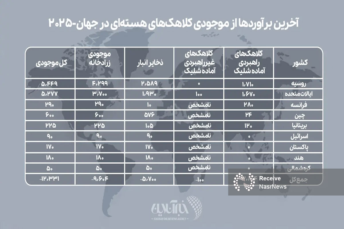 نصر: با وجود کاهش چشمگیر سلاحهای هستهای از دوران جنگ سرد، جهان همچنان با تهدید فزاینده تسلیحات اتمی مواجه است؛ برآوردی جامع از زرادخانههای هستهای جهان در سال ۲۰۲۵، حاکی از آن است که مجموعاً ۹ کشور بیش از ۱۲ هزار کلاهک هستهای در اختیار دارند؛ بیش از ۸۰ درصد از این تسلیحات تنها در اختیار دو کشور است.