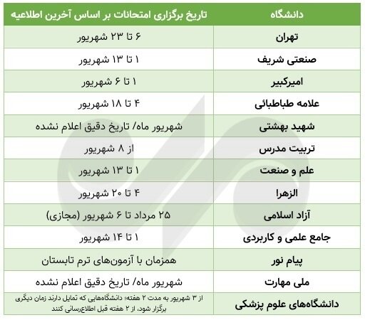 دانشگاه ملی مهارت نیز شهریورماه امتحانات را برگزار میکند ولی تاریخ دقیق برگزاری امتحانات اعلام نشده است.