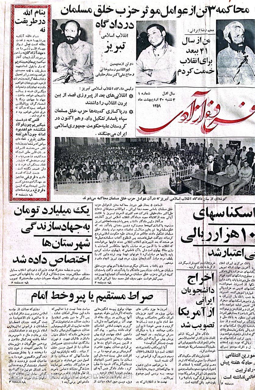 - در سال 1347 مطلبی بر علیه شاه در مهدآزادی چاپ شد که عواقب زیادی برایمان داشت. روزنامه توقیف شد و من و پدرم هر دو دستگیر و در دادگاه نظامی محاکمه شدیم. مدت زیادی از تبریز دور شدم. در نهایت به کمک یکی از دوستان پدرم که سناتور بود مهدآزادی رفع توقیف شد ولی من ممنوع القلم شدم و به خاطر اختلاف سلیقه با پدرم روزنامه و چاپخانه را ول کرده و رفتم سراغ کارهای تجاری. مهدآزادی تا سال 1354 منتشر شد تا این که در آستانه برنامه «گشایش فضای سیاسی کشور» طرح بازخرید کارکنان مطبوعات به اجرا در آمد که اگر یادتان باشد امتیاز نشریات در قبال پرداخت پول به صاحب امتیاز و نویسنگان جراید و خبرنگاران به عنوان غرامت، لغو شدند. حتی به کارگران چاپخانه مهدآزادی نیز غرامت پرداختند. پدرم با پول دریافتی به نوسازی چاپخانه پرداخت و ماشین آلات نو خریداری کرد و مشغول کار چاپ شد هر چند امتیاز چاپخانه به نام من بود.