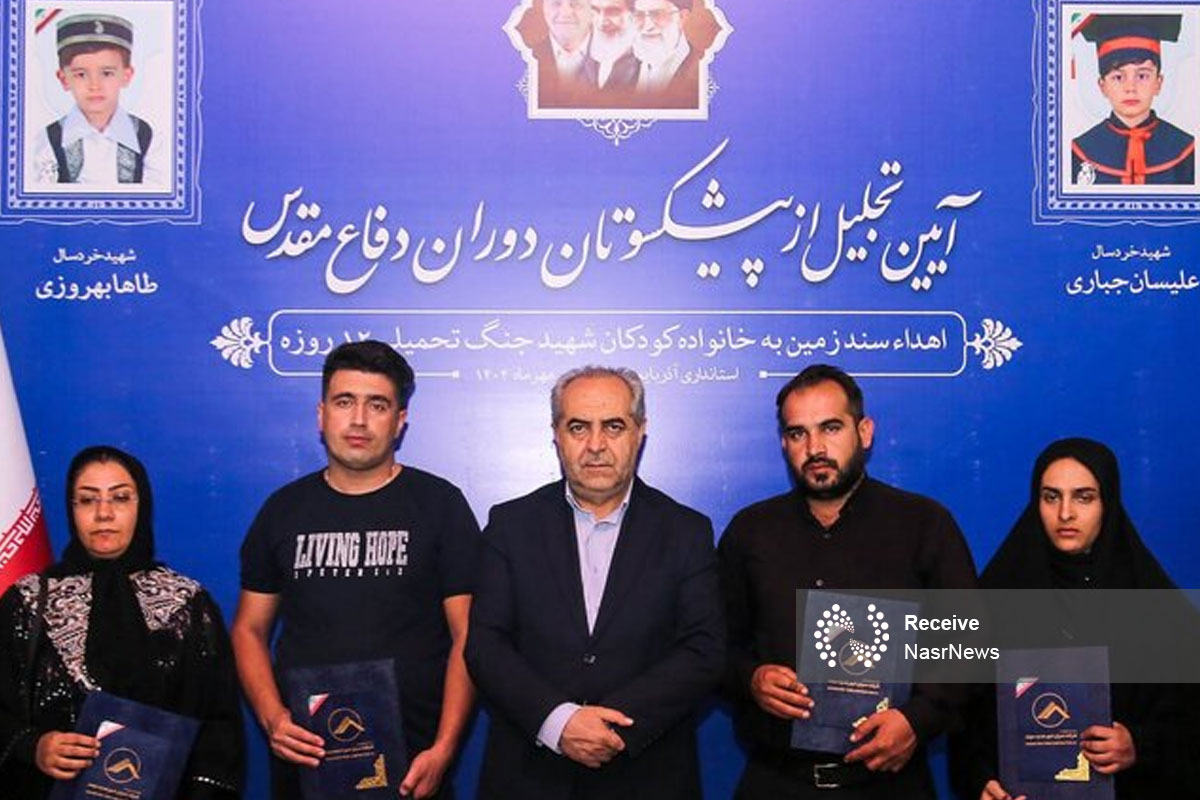 نصر: استاندار آذربایجان شرقی، سند زمین اهدایی دولت را به خانواده‌های دو کودک شهید تبریزی را تقدیم کرد.