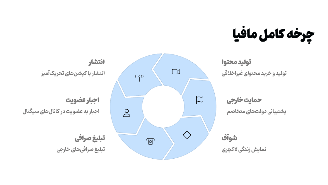 گزارش‌ها نشان می‌دهد بخشی از این شبکه‌ها تحت حمایت دولت‌های متخاصم ایران فعالیت می‌کنند. هدف آن‌ها تنها سود مالی نیست؛ بلکه تهاجم فرهنگی و اقتصادی است.
