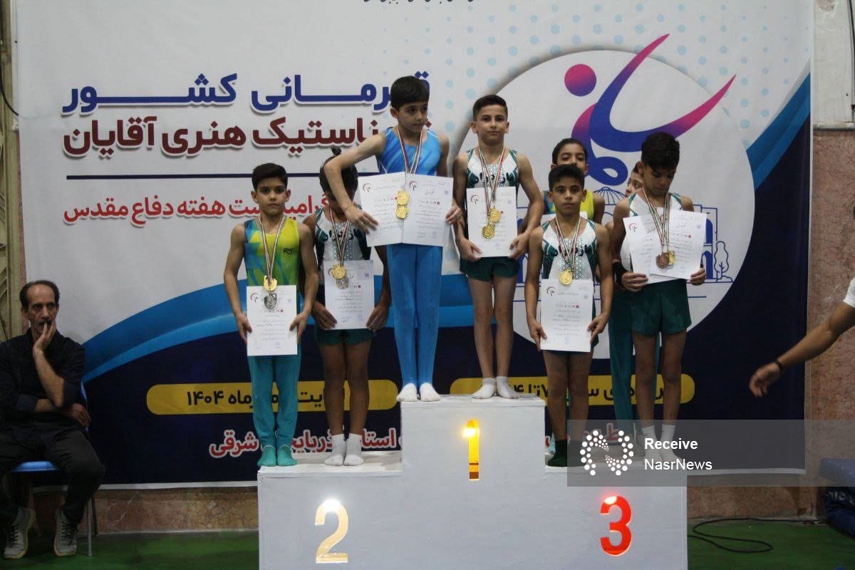 نصر: مسابقات ژیمناستیک هنری قهرمانی کشور ردههای سنی ۷ تا ۱۴ سال با حضور تمامی استانهای کشور به مدت چهار روز به میزبانی تبریز و در سالن شهید دلیر اکبری برگزار شد و با درخشش ستارههای آیندهدار این استان همراه بود.