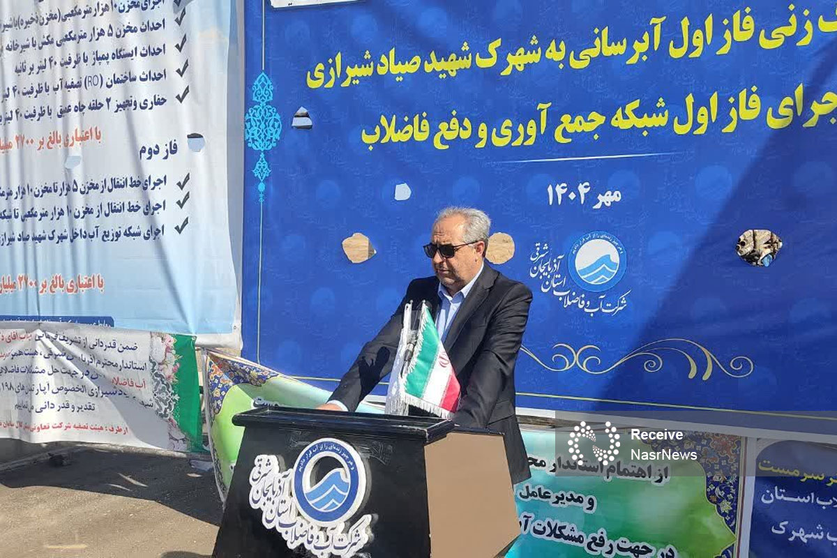نصر: مشکل آب و فاضلاب شهرک شهید صیاد شیرازی تبریز پس از ۲۰ سال و با اهتمام و جدیت مسئولان استانی در حال برطرف شدن است.