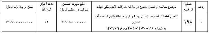 آگهی مناقصه عمومی (نوبت اول و دوم) / شماره 198 سال 1404