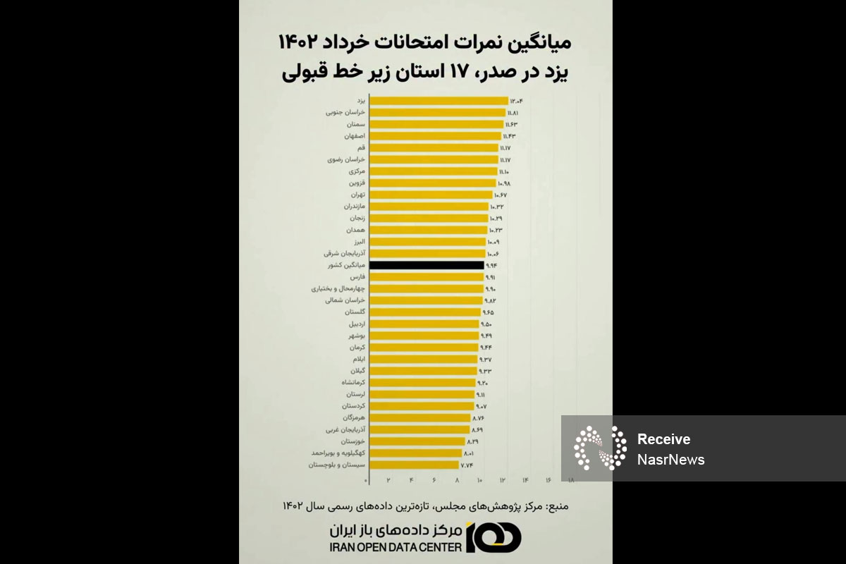 بر اساس دادههای وزارت آموزشوپرورش و گزارش مرکز پژوهشهای مجلس، میانگین نمرات کل کشور کمتر از ۱۰ بوده و تنها چند استان مانند یزد، خراسان جنوبی و سمنان توانستهاند میانگین نمرات بالای ۱۲ را ثبت کنند.