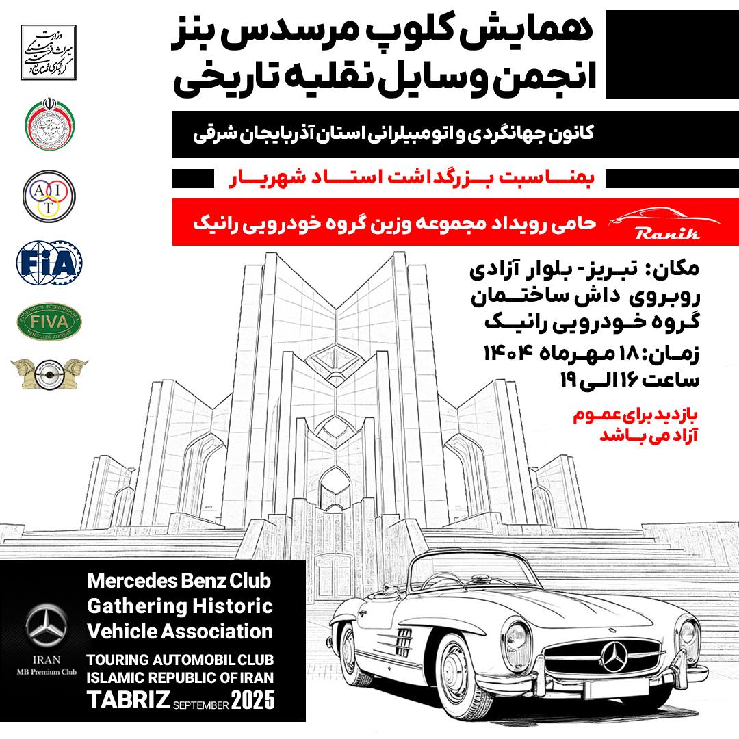 نصر: همایش کلوپ مرسدس بنز انجمن وسایل نقلیه تاریخی به مناسبت بزرگداشت شاعر نامدار ایران استاد محمدحسین بهجت تبریزی (شهریار) و به همت کانون جهانگردی و اتومبیلرانی آذربایجان شرقی، برگزار میشود.