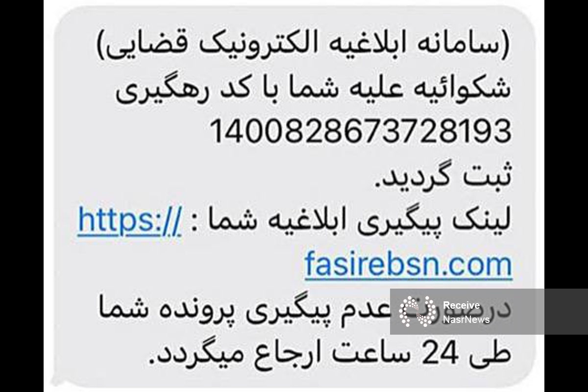 نصر: مجرمین با استفاده از ارسال یک پیامک حاوی لینک ابلاغیه قضائی، عدالت همراه و شکایت علیه شما از شهروندان میخواهند جهت مشاهده شکوائیه روی لینک ارسالی کلیک کند، زمانی که کاربر بر روی لینک کلیک مینماید به ظاهر یک اپلیکیشن دانلود میشود که در واقع یک نوع بدافزار است، که با نصب آن مجدد فرد را به صفحه پرداخت، هدایت شده تا در صورت ورود اطلاعات کارت بانکی توسط کاربر، نسبت به برداشت موجودی فرد اقدام نمایند.