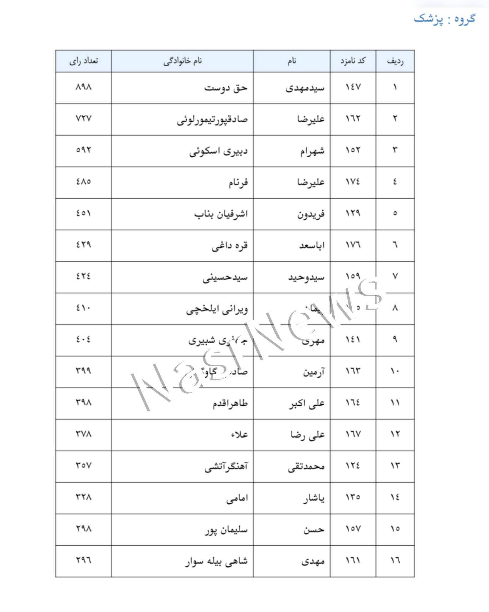اعلام نتایج نهمین دوره انتخابات سازمان نظام پزشکی تبریز