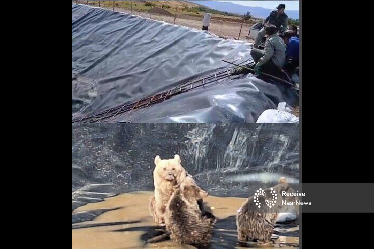 تلاش ۶ ساعته محیطبانان سراب برای نجات خانواده خرس گرفتار از استخر پلیمری