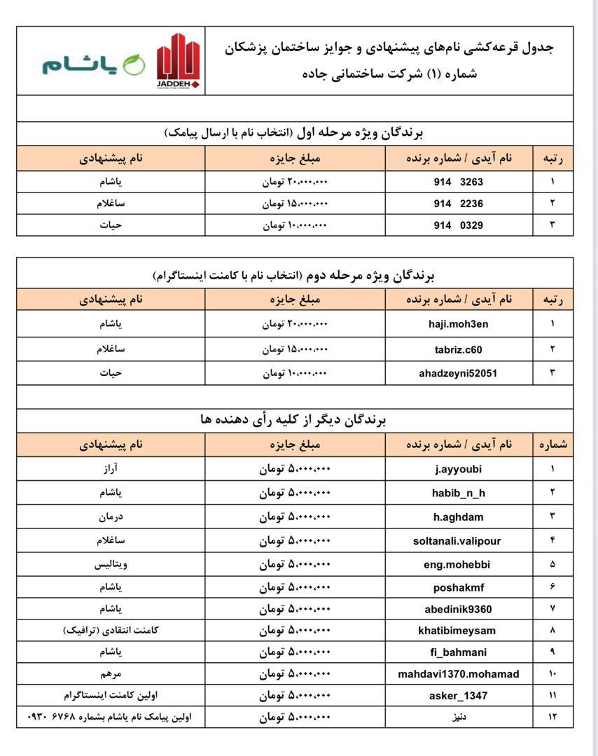 همچنین برندگان قرعهکشی مسابقه انتخاب نام ساختمان مشخص شدهاند.