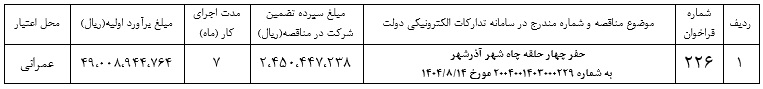 مهلت فروش اسناد از تاریخ درج آگهی لغایت ساعت 19 مورخه 25/8/1404