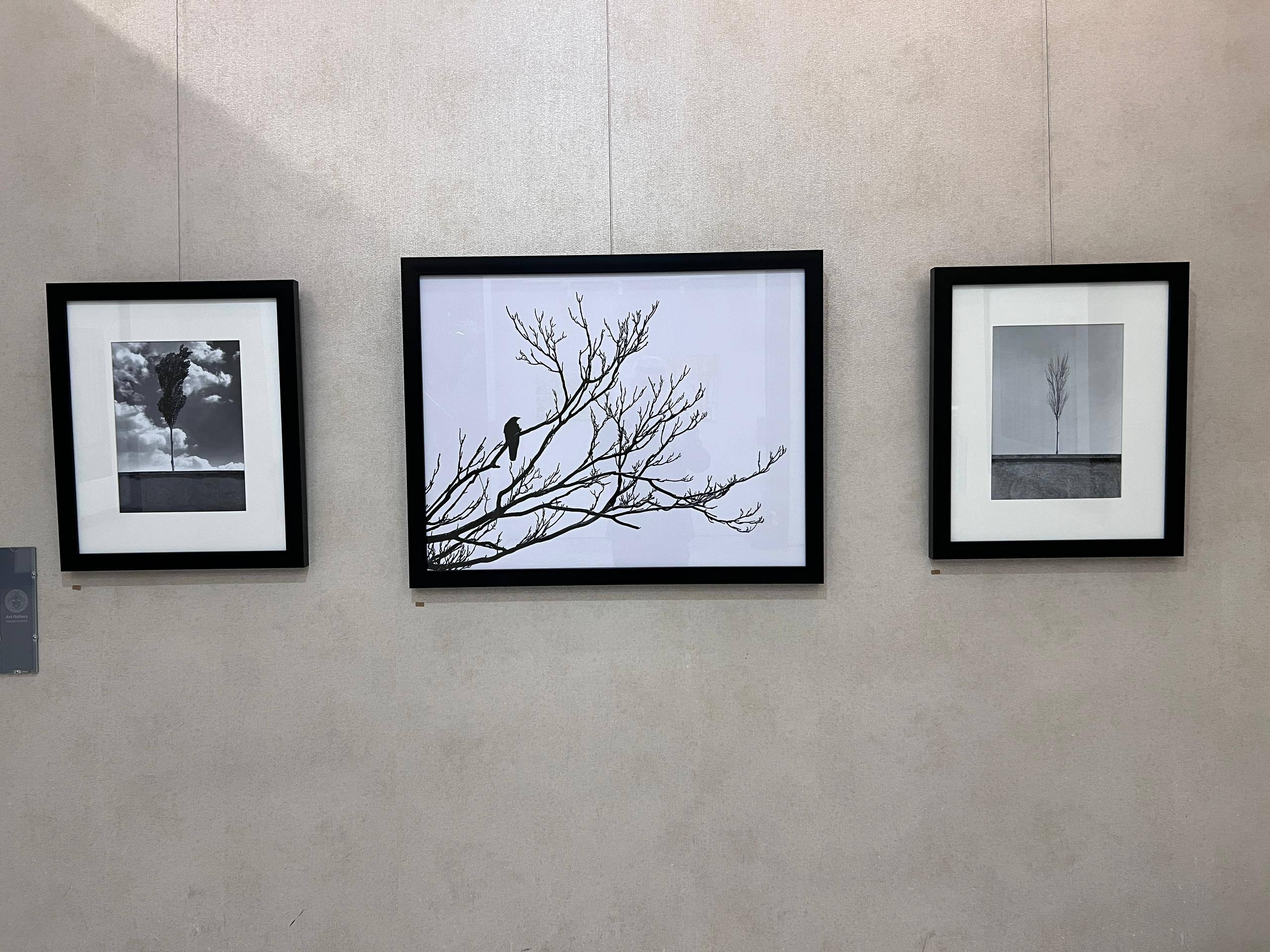 در ادامه، تکدرختی دیگر با کادری همگون اما با دو روایت از دو فصل متفاوت به نمایش درآمده بود؛ در یکی آغازی با طراوت و در دیگری مدفون در بتن سرد و خاکستری تمدن شهری. این دوگانگی، مفهومی از گذار انسانِ طبیعی به انسانِ محصور در ساختههای خود را در ذهن بیننده زنده میکرد.