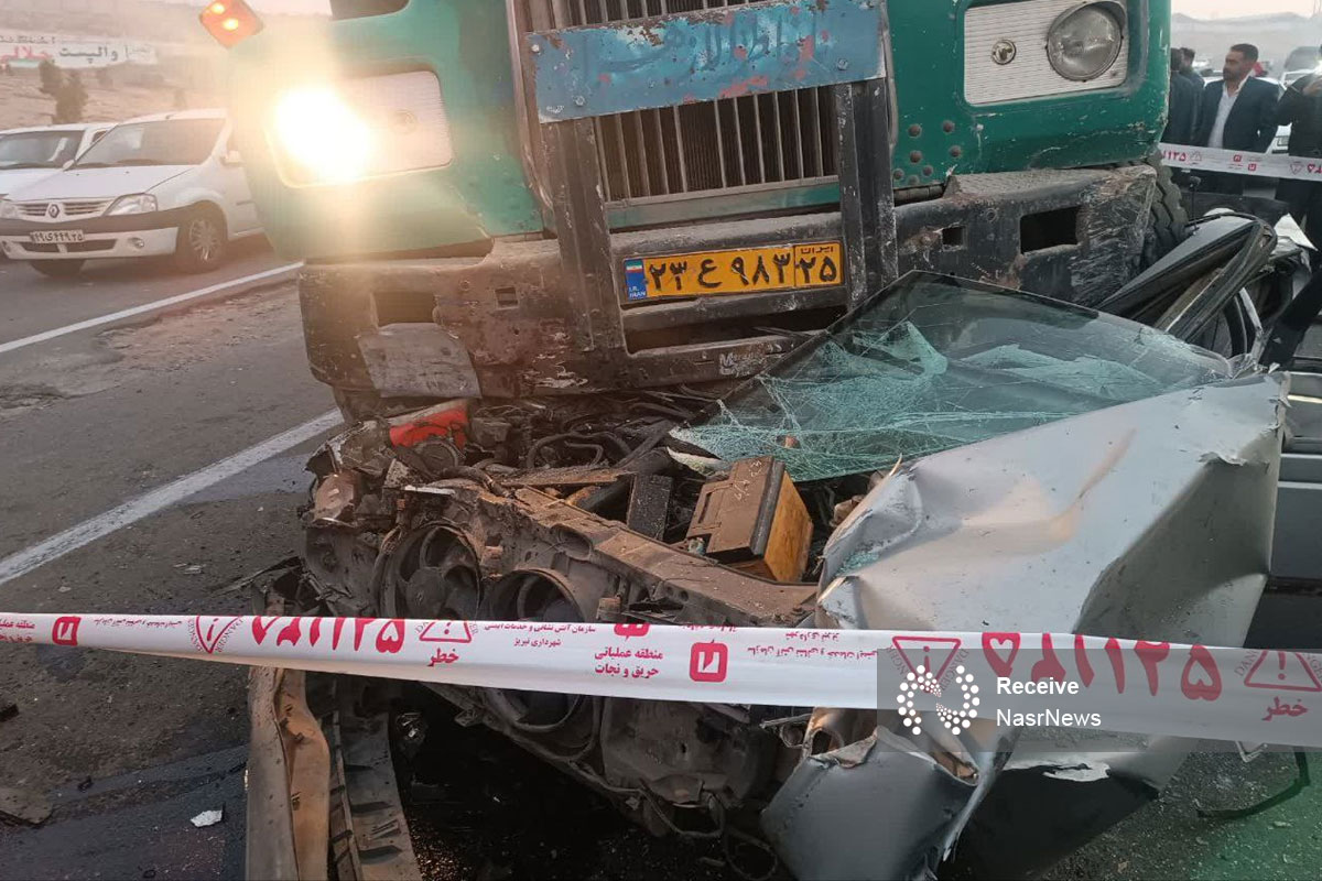 نصر: بر اثر برخورد خودرو بونکر سیمان با ۸ دستگاه خودرو در خروجی لاله تبریز، راننده ۵۰ ساله پژو در زیر چرخ بونکر جان باخت و سایر خودروها نیز دچار خسارات شدند.