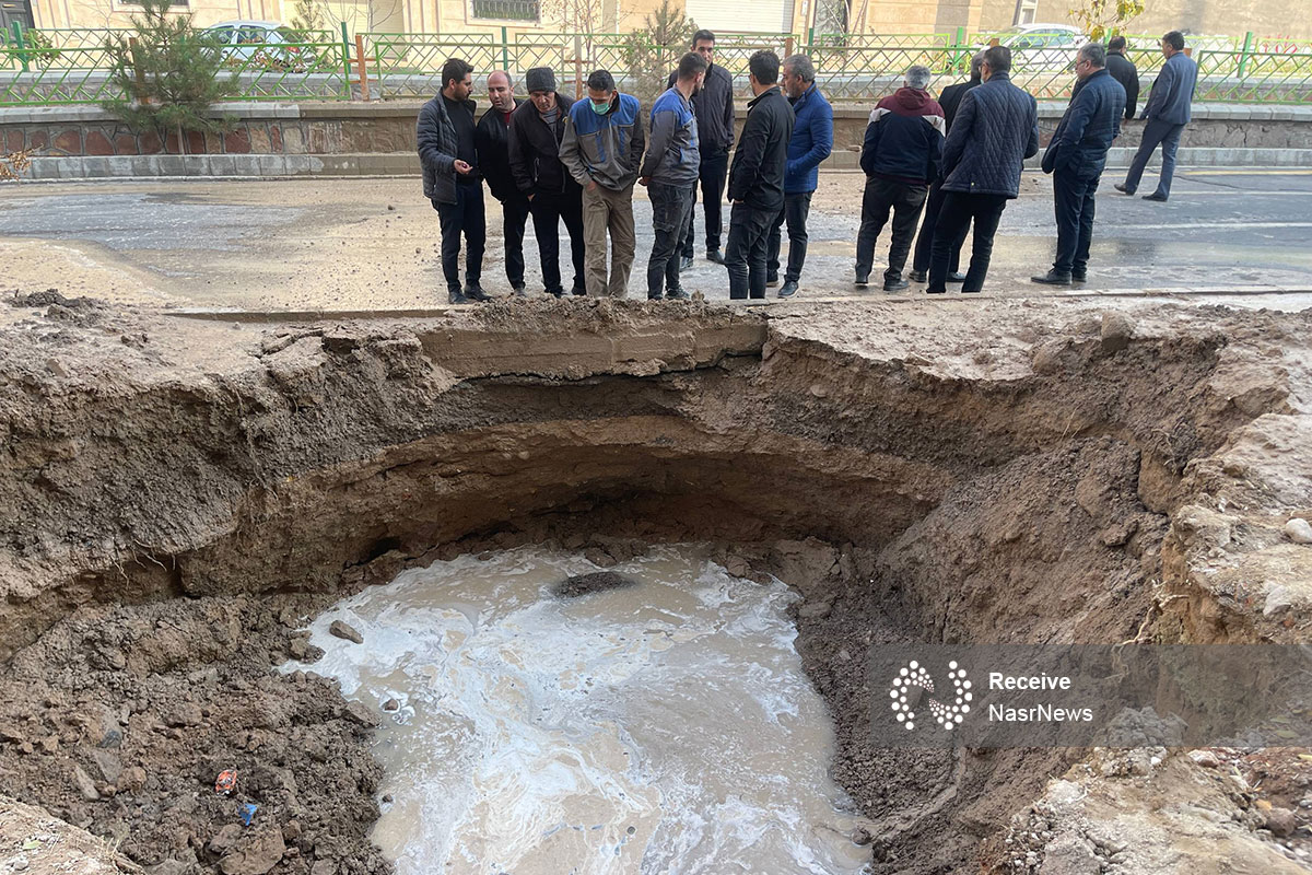 پس از اینکه شهرداری منطقه دو با فراهمکردن بیل مکانیکی اقدام به بازکردن سطح زمین کرد، گروههای فنی آب و فاضلاب بررسی منشأ نشت را آغاز کردند. پیشتر احتمالهایی مانند چشمه طبیعی، قنات قدیمی یا آسیبدیدگی لولهها مطرح شده بود.