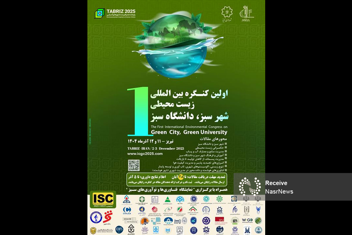 نصر: اولین کنگره بینالمللی زیست محیطی «زیست شهر سبز، دانشگاه سبز» با مشارکت اتاق بازرگانی تبریز در راستای تحقق اهداف توسعه پایدار و ارتقاء جایگاه شهر تبریز به عنوان پایتخت محیط زیست شهرهای آسیایی در سال ۲۰۲۵، در تاریخهای ۱۱ و ۱۲ آذرماه ۱۴۰۴ برگزار میشود.