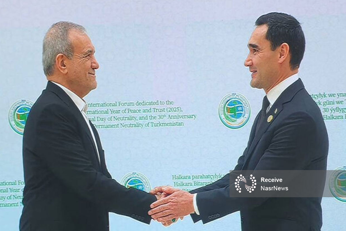 نصر: مسعود پزشکیان در دیدار با  سردار بردی‌محمداف رئیس‌جمهور ترکمنستان، با اشاره به سابقه دیرینه روابط و پیوندهای عمیق میان دو کشور گفت: کشورهای ما همسایگانی با تاریخ طولانی ارتباطات هستند و این همسایگی، مطابق با نگاه رهبران دو کشور، بر پایه برابری، دوستی، صلح و امنیت معنا پیدا می‌کند. چنین نگاهی ایجاب می‌کند که میان ما ارتباطی ویژه و مبتنی بر اعتماد متقابل برقرار باشد تا بتوانیم روابط صمیمانه، صلح‌آمیز و پایدار را به‌صورت عملیاتی تقویت کنیم. این اعتماد مشترک است که تضمین‌کننده صلح و ثبات میان دو ملت خواهد بود.