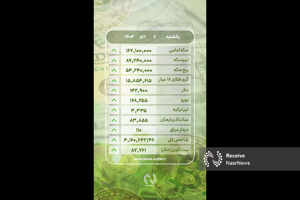 نصر: قیمت انواع طلا و سکه امامی همچنان انواع ارز موجود در بازار تبریز به تاریخ یکشنبه 7 دی ماه 1404 به شرح زیر است: