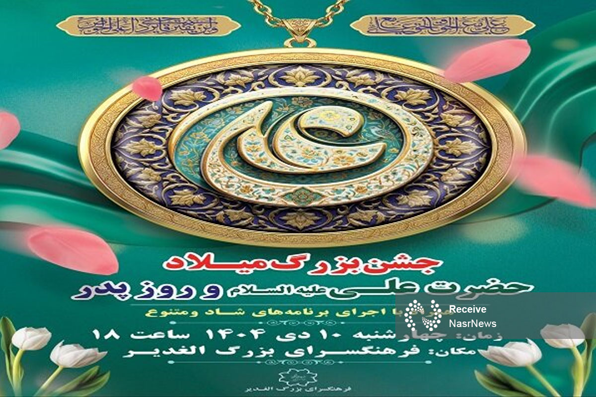 نصر: جشن بزرگ میلاد باسعادت حضرت علی(ع) و گرامیداشت روز پدر با اجرای برنامههای شاد و متنوع در فرهنگسرای الغدیر برگزار می شود.