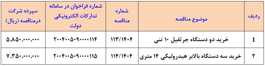 شركت توزيع نيروي برق آذربايجان شرقي در نظر دارد از طريق برگزاري مناقصات عمومي دو مرحله ای نسبت به خرید به شرح جدول ذيل اقدام نمايد.