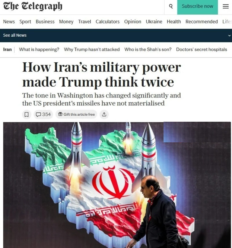 نصر: روزنامه بریتانیایی دیلی تلگراف در تحلیل جدید خود از تقابل ایران و آمریکا نوشت: واشنگتن پس از بررسی دقیق توان نظامی ایران و تهدیدهای بالقوهٔ متقابل، از اجرای ضربات گسترده نظامی مستقیم خودداری کرده یا آن را به تعویق انداخته است.