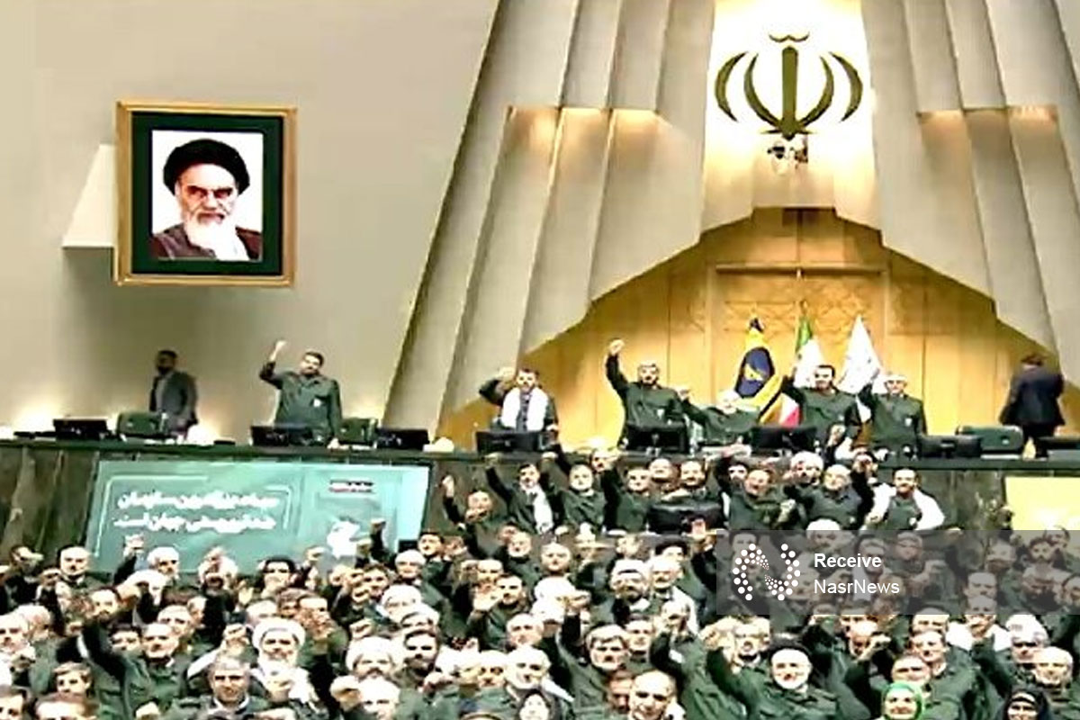 نصر: نمایندگان مجلس شورای اسلامی با مشت هایی گره زده شعارهایی در راستای حمایت از سپاه پاسداران انقلاب اسلامی سر دادند.