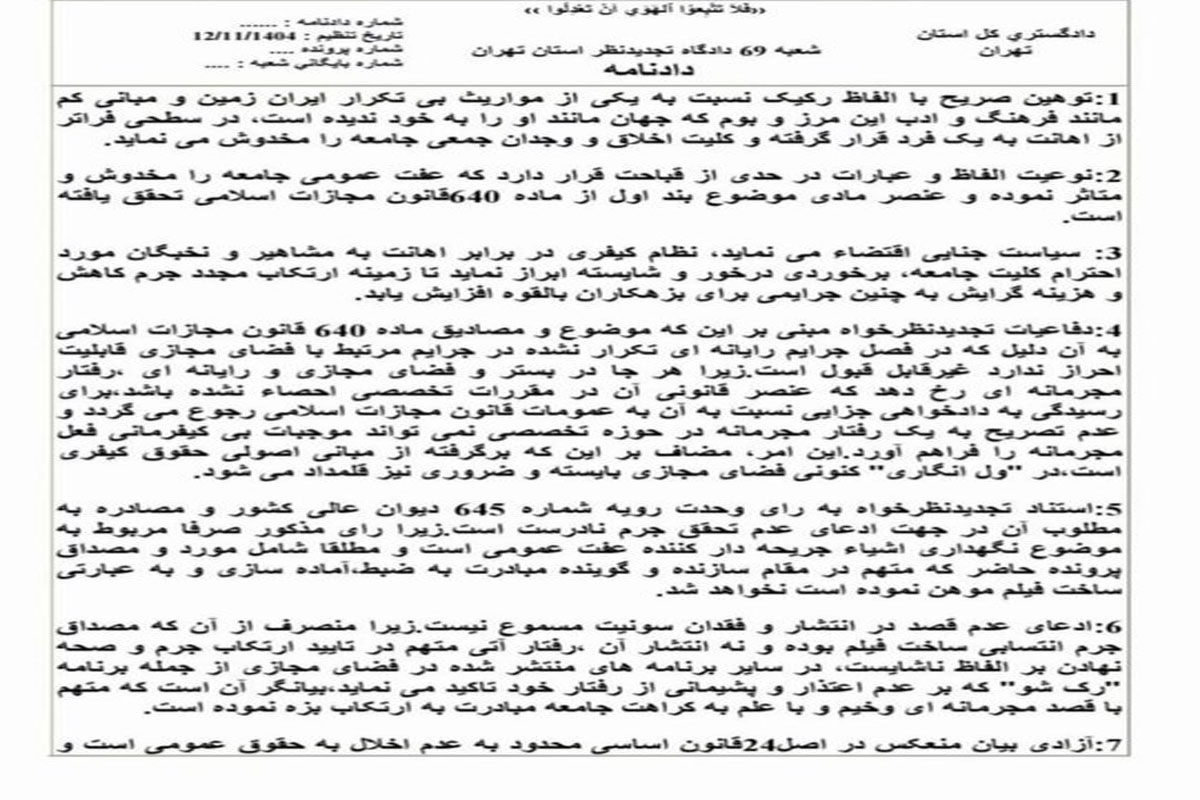 این حکم در مرحله تجدیدنظر صادر شده و لازم‌الاجرا اعلام شده است.