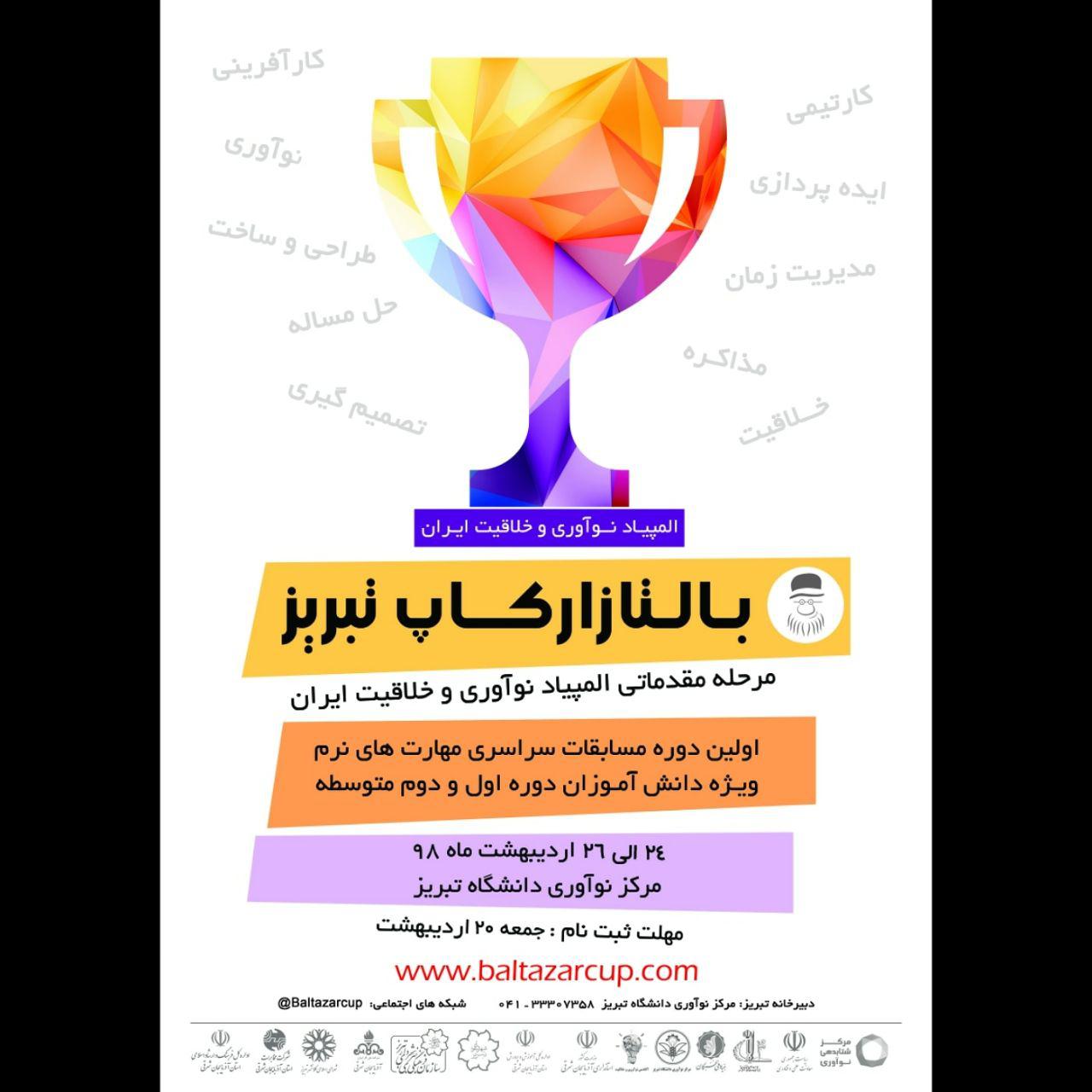 اولین دوره مسابقات بالتازارکاپ در مرکز نوآوری دانشگاه تبریز در تاریخ 25 و 26 اردیبهشت ماه 98 برگزار می شود و جهت ثبت نام می توانید به سایت http://baltazarcup.com/#toggle-id-5 مراجعه کنید.