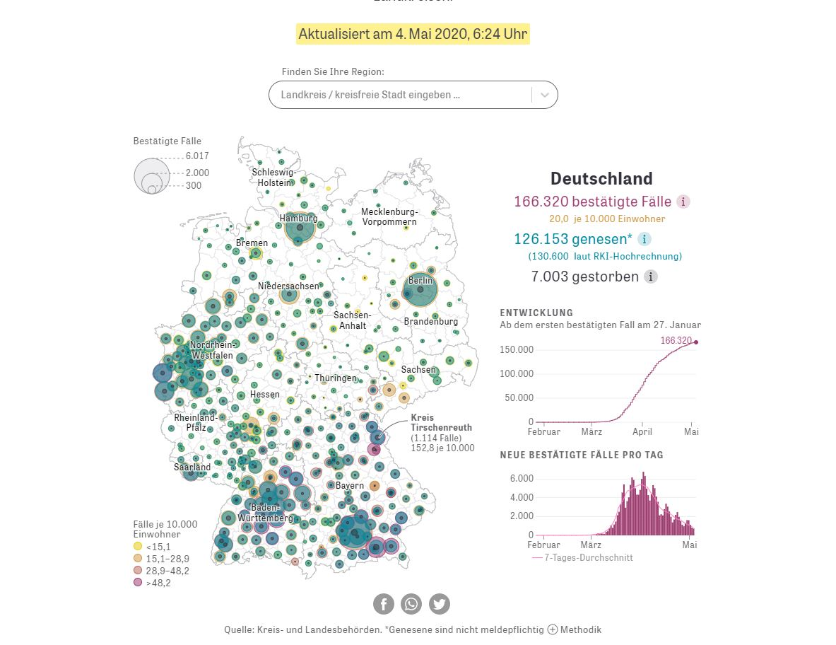وبگاه روزنامه «زیت»، بر اساس آماری که از منابع دولتی و درمانی محلی و کشوری جمعآوری کرده، ضمن اعلام موارد ابتلای جدید به ویروس کرونا، نوشت تعداد کل آلمانیهای مبتلا به این ویروس به 166 هزار و 320 نفر رسیده است.