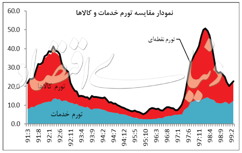 با این رویکرد، تورم هدف بانک مرکزی در یک اقتصاد باز - مانند اقتصاد ایران که با شوک تحریم (کاهش بهرهوری در بخش قابل تجارت) مواجه شده- باید تورم داخلی باشد. در اقتصاد ایران تورم داخلی را میتوان با تورم خدمات – رشد شاخص مصرفکننده با حذف قیمت کالاها از سبد مصرفی خانوار – متناظر گرفت.