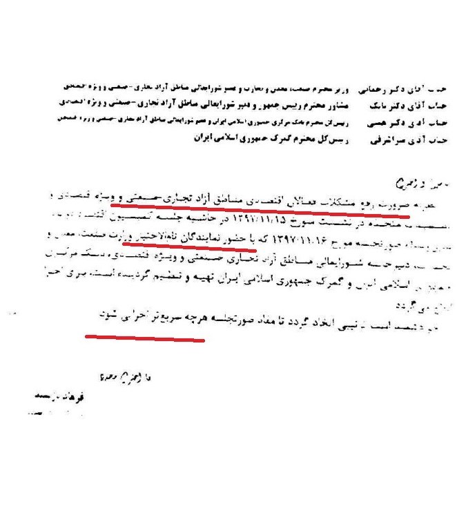 در مکاتبه دژپسند با همتی و رحمانی رئیس کل بانک مرکزی و وزیر صنعت آمده است، خواهشمند ترتیبی اتخاذ نمایید تا مفاد صورت جلسهای که با حضور نمایندگان تام الاختیار وزارت صمت، دبیرخانه شورای عالی مناطق آزاد، بانک مرکزی و ... در خصوص رفع مشکلات فعالان اقتصادی مناطق آزاد  برگزار شده است، هرچه سریع تر اجرایی شود.