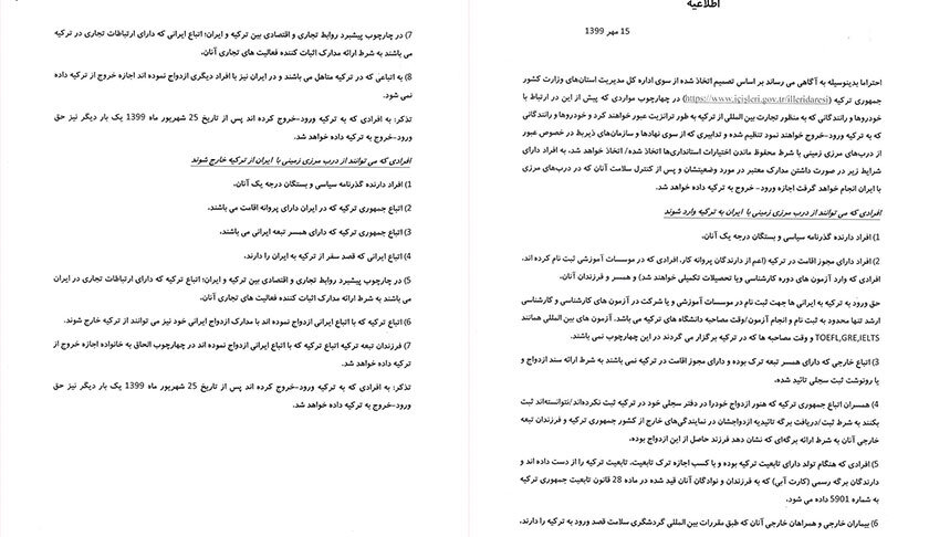 وزارت کشور ترکیه برای خروج اتباع این کشور و ورود به خاک ایران نیز قوانینی در نظر گرفته است.