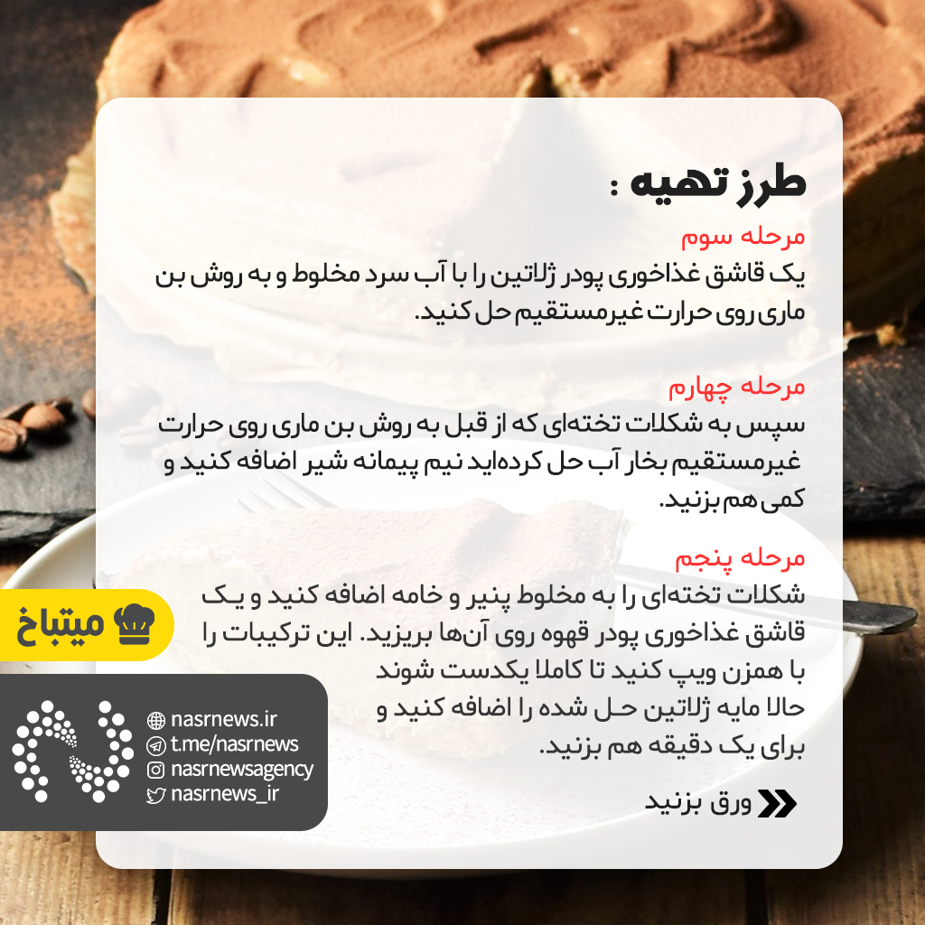 در پنجمین قسمت از این مجموعه مطالب نحوه پخت "چیزکیک تیرامیسو بدون فر" خوشمزه سرآشپزهای آذربایجان را معرفی می کنیم، امیدواریم این سلسله مطالب بتواند در معرفی این ظرفیت ها اثرگذار باشد.